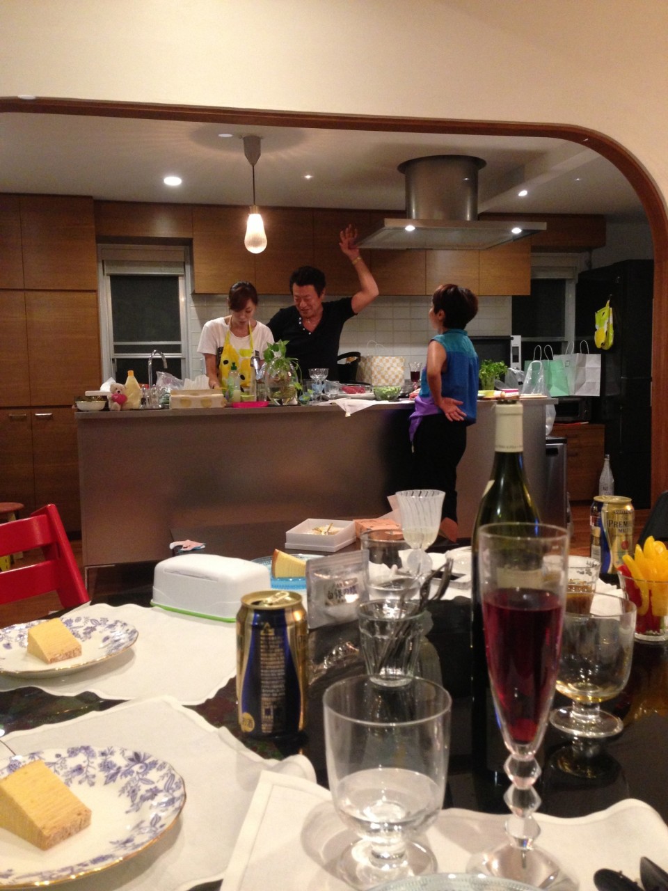T-house home party 2013-09-13 News by shunichi furuya CLOSE 青いシートと白い防水 k邸 植栽工事 代々木八幡「切り通し」の家にて、オーナー様主催の完成記念パーティーに行って参りました。奥様の素敵なお料理とおいしいお酒、オーナー夫妻の素敵な笑顔に囲まれて、楽しい一時となりました。夫婦の笑顔を切り取る木製アーチも活きています。