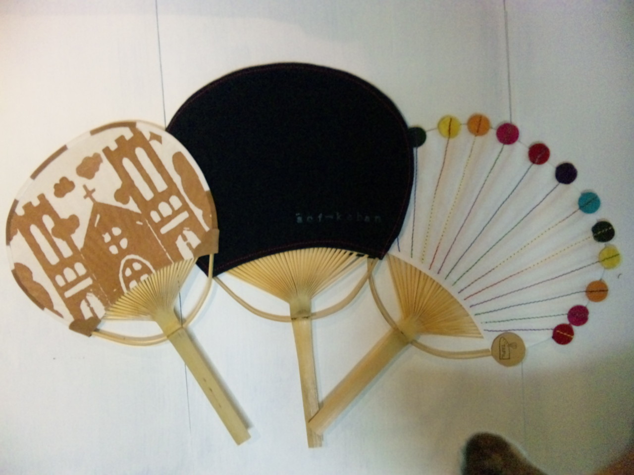 竹のフレームに貼り付けから行う、うちわ作りのワークショップを随時開催致します。