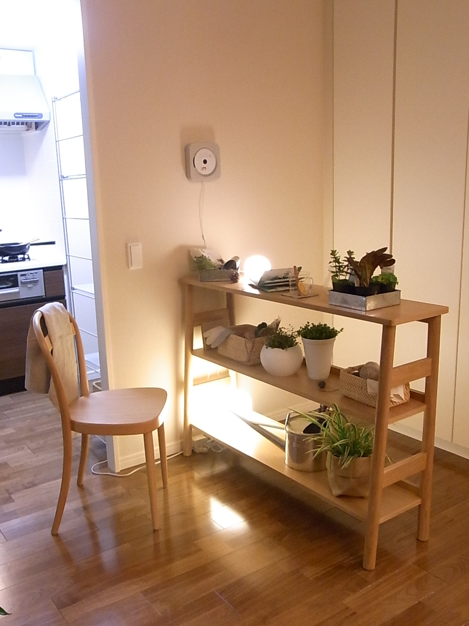 キッチンには食器棚の代わりにMUJIの棚を入れました。これぞ無印!!なイメージ(笑)