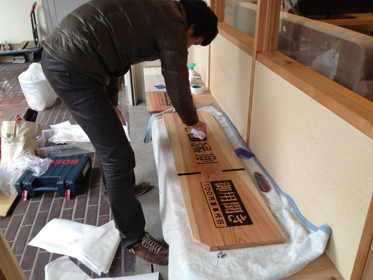 地元の皆さんは、一体何の店舗ができたのか、いつオープンするのか興味深々!看板取り付け作業をしている間にも、作業がはかどらないくらい、沢山の方々に声をかけられました(笑)