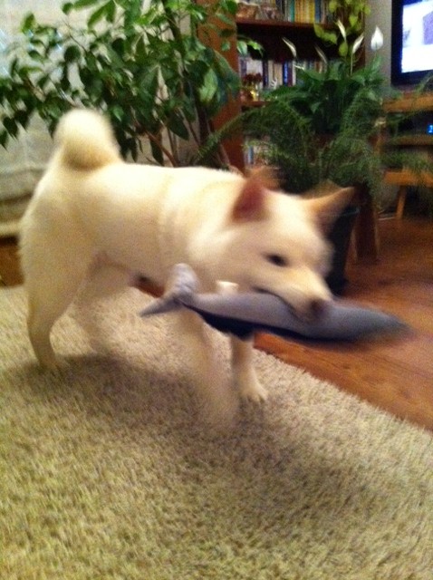 わんこも不思議そうに眺めています。