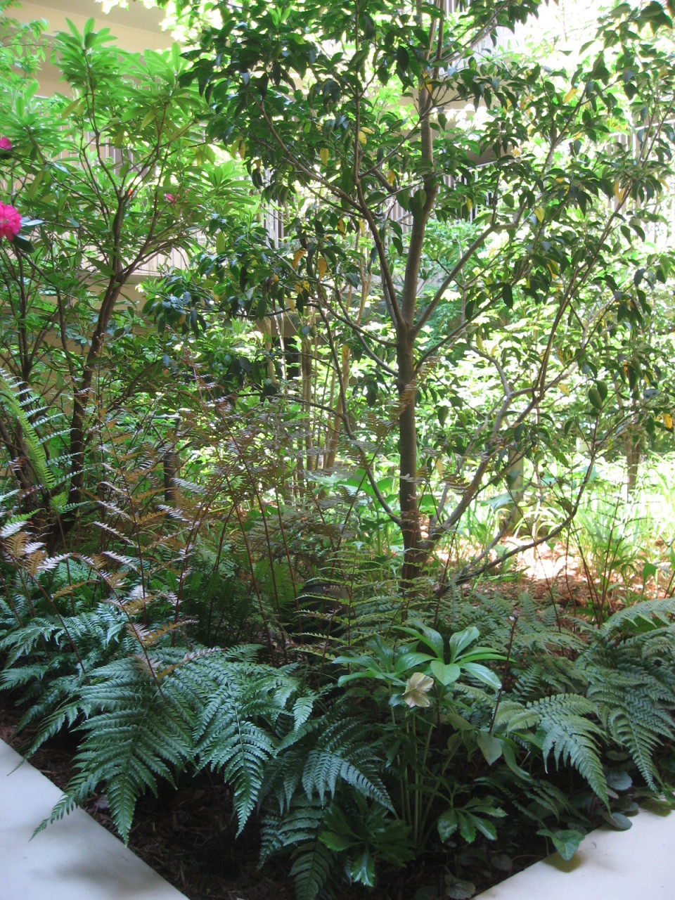 施工後写真。入口にアーチを設けたり、存在感のある鉢を置いたり、かなり華やかになりました!