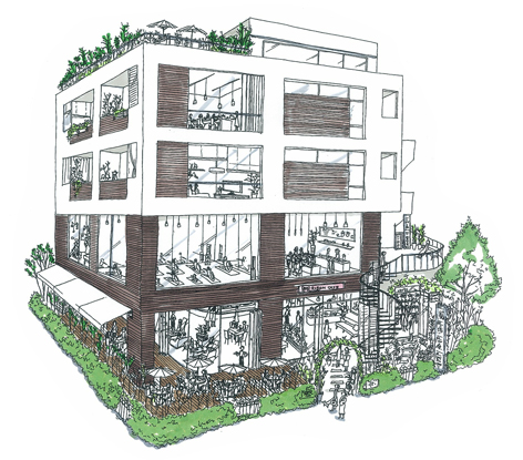 大阪の食品会社さんの有効活用案件。元は東京支店機能を有したオフィスと商品を格納出荷するための冷蔵庫及び寄宿舎を有する建物が建っていました。目黒通りの碑文谷ダイエーの手前を左に曲がり、サレジオ教会の目の前という好立地から単なる賃貸住宅ではなく街の起点となり、地域に愛される建物づくりを目指そうということで企画提案を行い、着手するに至りました。1階には出版社が運営するカフェダイニング「碑文谷テラス」を誘致2階店舗スペースにはグリーンのある生活を提案するSOWatelierを社内ベンチャー(当時UDS時代)で立ち上げ、合わせて教室や各種イベントを執り行うためのレンタルスペースSOWmuseを併設し店舗運営事業に着手した。3階より5階までは大きめの賃貸住宅7戸を企画。周辺の賃料相場を2割ほどUPする高収益物件となりました。