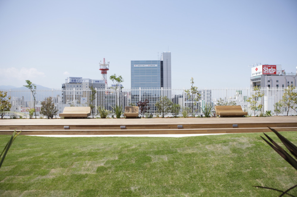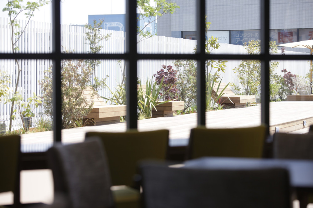 駅ビル周りの展望と計画されたグリーンが楽しめ、心地よい空間となった。
