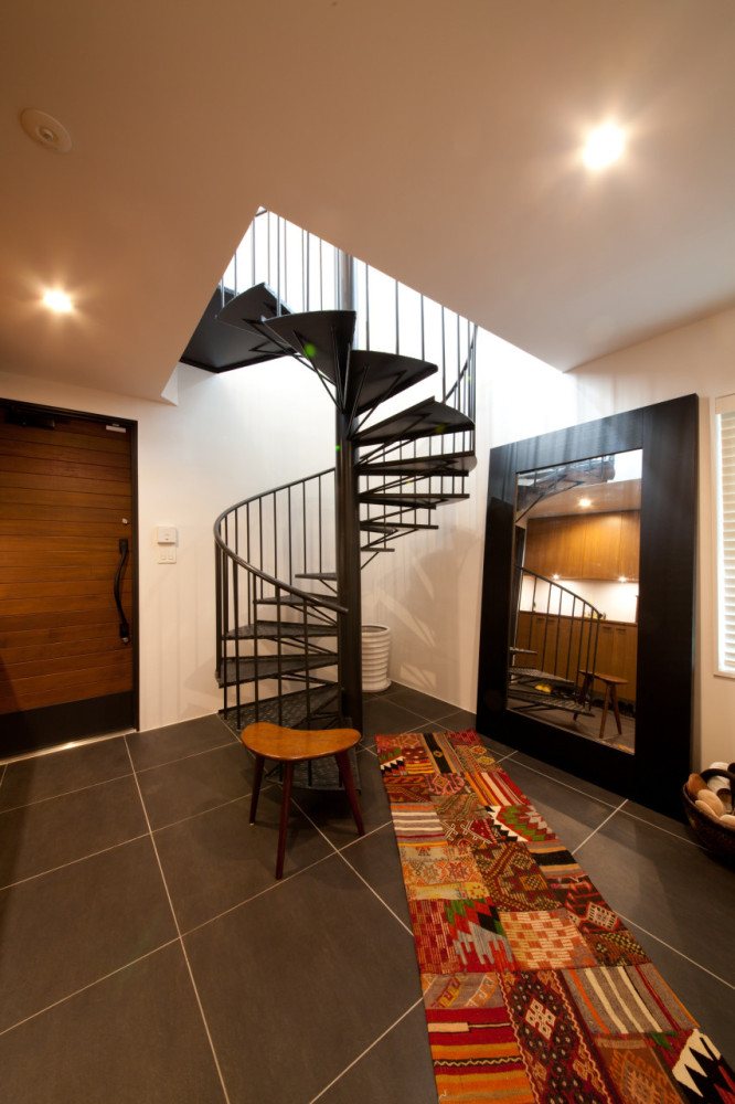 また既存螺旋階段を延伸しアプローチする屋上テラス、2階テラス、1階のアプローチテラスおよび、擁壁に囲まれたウエルカムテラス。これら様々な外部領域が上下に折り重なり、既存植樹と新規植栽が混じり合い、オーナーの利用用途に応じ、意味を持ったランドスケープデザインが構築された。