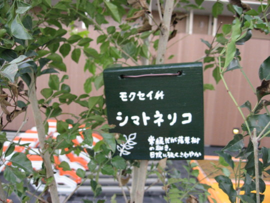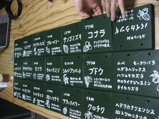 小さな子供たちが植物に興味をもってもらえるように手書きのイラストで分かりやすい樹木板を作ってみました。