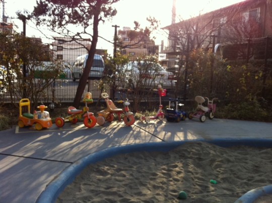 最近検査でお邪魔したら、砂場脇のブーブーカーピットにしっかりとブーブーカーが整列していました!(感動)