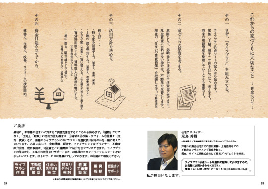 Housing Catalog 制作のこと 住宅販売用のパンフレット作り。土木や比較的大規模の建築をメインに扱われていたライト工業さんからのご依頼。パンフレットを作るための事業の形造りのところからお手伝いいたしました。 CLOSE Kugenuma Renovation Village WS 女性作家の手仕事展