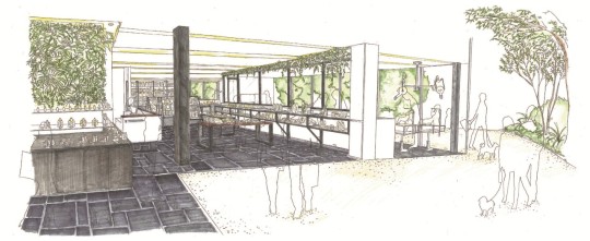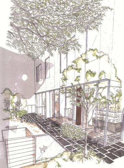 数度のデザイン提案を経て、今回実現したような素材感を生かした、緑あふれる