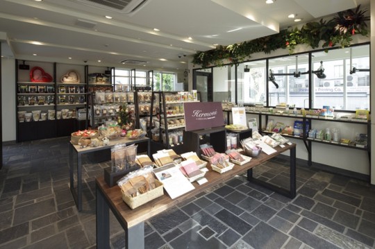 これらの活用のシーンがショップのファサード及びガーデンの緑と相まって