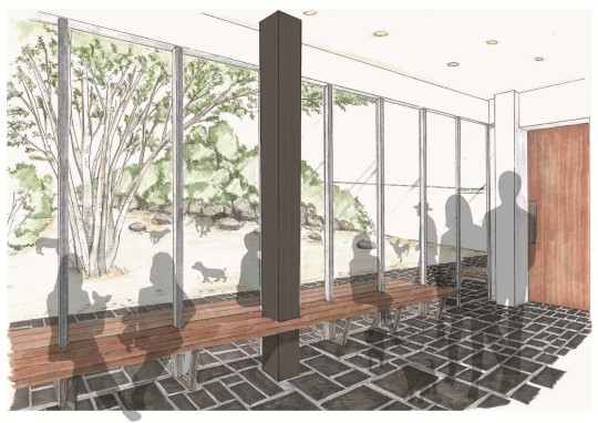 物販スペースとホスピタルスペースをつなぐ、ドッグガーデンに面したスペースに