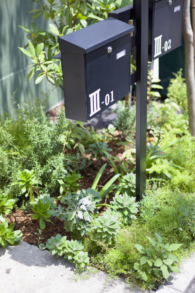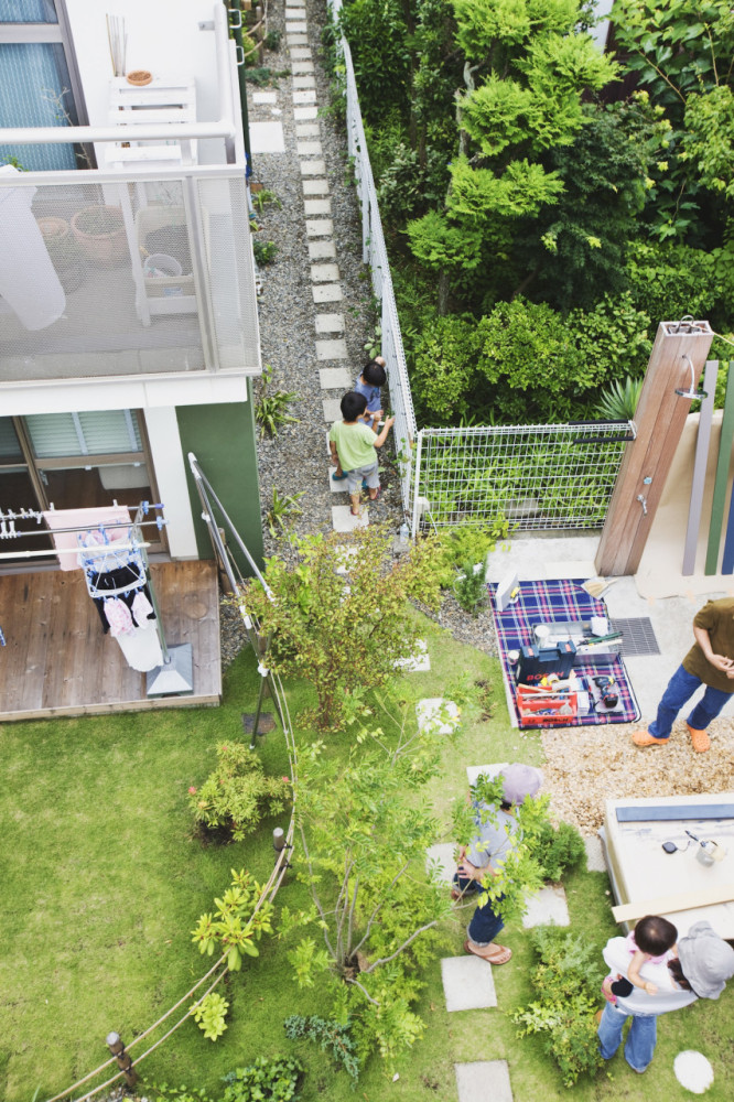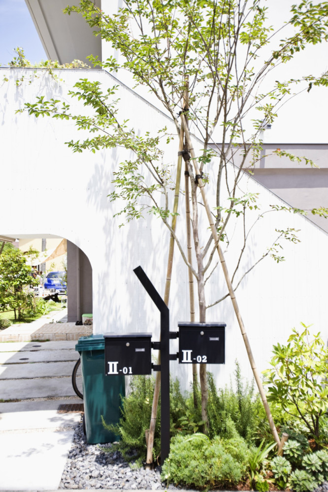 また通りから見通すビレッジの雰囲気として多くのグリーンを配しています。プロジェクトの象徴としてのシンボルツリー、路地の曲がり角や突き当たりに季節を感じさ せるアイストップとなる草木。共用空間に彩りと収穫の楽しさを与える果樹。海の近く、シー サイドエリアの魅力を伝える浜辺をイメージさせる植栽。外観のカラーコーディネーションと 植栽の彩りのバランスを考え、開放的な湘南ライフを住人に感じてもらえるよう計画を行いま した。